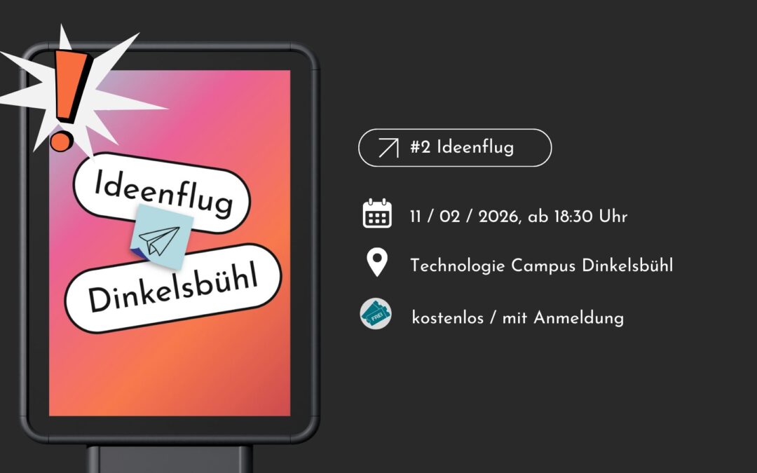 Nach unserem erfolgreichen Auftakt geht der Ideenflug auf Tour und landet dieses Mal direkt am Technologie Campus Dinkelsbühl.🛸