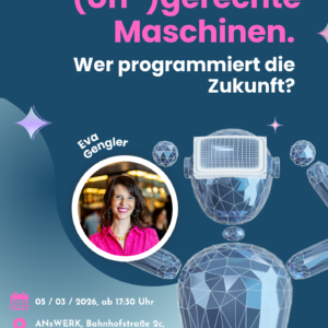 (Un-)gerechte Maschinen. Wer programmiert die Zukunft? Künstliche Intelligenz gilt als effizient, objektiv und zukunftsweisend. Doch KI ... 05 März 17:30 ANsWERK im PosthofBahnhofstraße 2c, 91522 Ansbach
